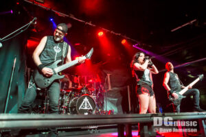 The bouncy, energetic set begins with ‘Walking Down the Street’, one of a handful of tracks aired from the aforementioned ‘X’; an album that saw the band ditch some of the symphonic elements of their sound for more of a modern, dynamic feel. A fantastic, catchy chorus, combined with razor-sharp riffage from Andy Menario, and some big hits from Divizia, gives the track a vibrant and punchy edge. Another newer moment, ‘Collapse’, quickly follows on, and the bouncing starts, with the three outfield players all jumping as one. A few times during the set, Angela Di Vincenzo’s vocals spark comparisons with Pat Benatar, especially on ‘The Song of the Universe’, and the chorus of ‘Desperation’, which has a distinct ‘We Live For Love’ vibe to it. Job done.