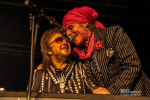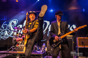 The “Ain’t Half Hot Mum” theme music coincides with the house lights dropping and Spike and his VERY merry band of troubadours take to the stage (well, most of them do, apparently one Nigel Mogg was still in the toilet as the others took their cue!) After the legal issues and sackings, Spike has surrounded himself with something of a super group, and whilst it is hard to clearly see the fun Harry James is having behind his kit, Luke Morley is clearly having the time of his life! Add in Nigel Mogg’s bass ( a man who was born to be a rocker. You can’t imagine him being anything else) and Willie Dowling with questionable fashion sense but glorious keys, and this IS Rock and Roll!