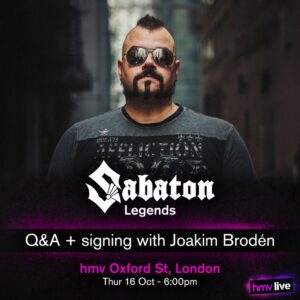 Sabaton frontman Joakim Brodén will participate in a Q&A hosted by bestselling historian, TV Presenter, and award-winning journalist Dan Jones. The two will have an in-depth chat about the stories behind the album. Fans will also have the opportunity to ask their questions before Joakim signs copies of the new album. This exclusive event will have very limited spaces.