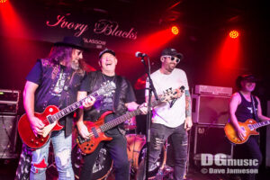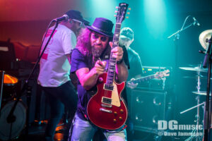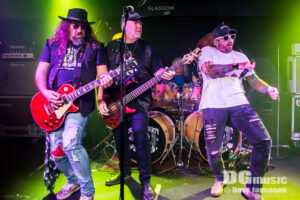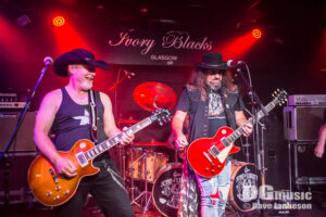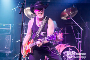 From here it’s straight into the boogie-licious ‘DC-strains of ‘Light The Fuse’ which has a killer groove to it, followed by the thick bass-licks from the rock steady Mark Thomas that shepherd in the intro to the catchy-as-hell ‘Tertulia Time’ (interesting fact, pub quiz fans, a tertulia is a social gathering with literary or artistic overtones, especially in Iberia or Spanish America). Fred Hale is knocking them dead with his lead work, and with Andy Muse alongside him as the Malcolm Young to his Angus, it’s a guitar-heavy show where both guitarists constantly shine. Alongside these two are the nerve centre of the band, Mark Thomas and his partner in crime, drummer Steve Byrne, who are one of the tightest rhythm sections you are as likely to encounter on the circuit. Apart from a few stick twirls from Byrne, the pair keep it simple and build the foundations for the others to strut their stuff upon.
