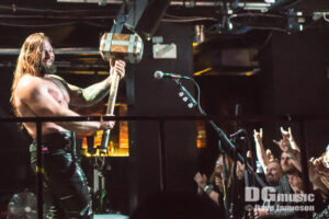 Think Conan the Barbarian meets Thor fantasy-inspired metal, and you are on the right path. Each band member is dressed in fantasy garb, with bassist Florian Toma getting extra points for sporting a kilt (and slapping out ‘Flower of Scotland’ during his bass solo), guitarists Jassy Pabst (who depart’s the band after the Summer shows) and Ursula Zanichelli go with a Mad Max Road Warrior look, while masked drummer Leif Jensen is over in the corner, in darkness making himself heard.