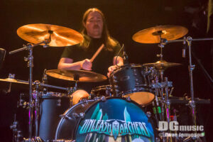 2020’s ‘Abyss’ album is the starting point for the set with the title track, ‘Soulbound’, and ‘Faster Than Light’, all peeled off one after the other in quick succession. It’s hard not to get carried away with superlatives when it comes to UTA vocalist Brittney Slayes, but she is faultless and one of the strongest vocalists (regardless of gender) in metal today, and the ease with which she dispatches those three fast opening tracks without barely pausing for breath is staggering. Propelled forward by the ever-reliable Scott Buchanan behind the kit (his kick-drum work is a joy to behold), the opening twenty minutes or so fly past in a blur.