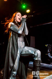 Finally, Slayes pauses for a breath, and surveys all that is unfolding in front of her…“On a Tuesday night!” and after asking how many people have work in the morning, she declares, “Well, we are not going to go easy on you…”. Shout-outs go to THAT karaoke session from the last visit, and then the band explodes headfirst into another YouTube hit with ‘Awakening’, fans of playthroughs honestly do need to check out the one for ‘Awakening’ as it is something special and highlights the incredible playing from the guys in the band.