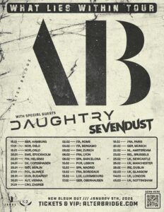 All dates with headliner Alter Bridge and special guest Daughtry. Sevendust open all shows.